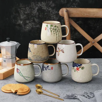 • Custom Logo 380ml Porcelain Underglaze Ceramic Mug Hand-Painted Plants Flowers Birds Pattern for Coffee in Restaurants
